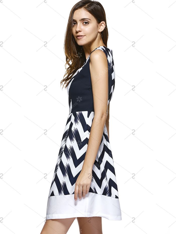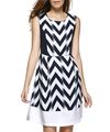Fashion Zigzag Stripe Fit and Flare Sleeveless Dress For Women